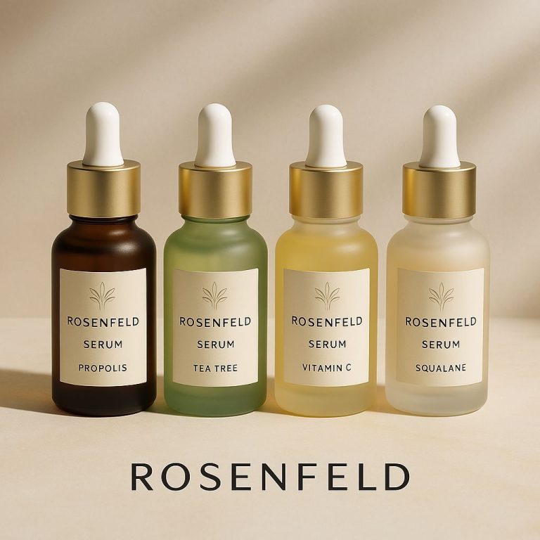 Unsere Produkte werden ausschließlich für Rosenfeld Cosmetics entwickelt und hergestellt. Jede Rezeptur, jedes Design und jede Verpackung ist speziell auf unsere Marke abgestimmt – und nur über uns erhältlich.